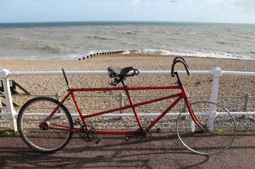 Данный двухместный велосипед был изготовлен из двух путем соединения рам.