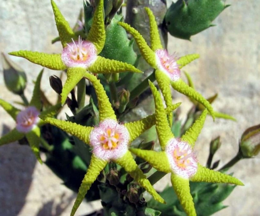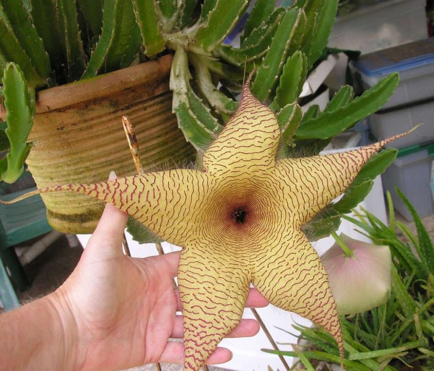Это комнатное растение украшает пейзажи дикой природы в Южной Африке. Красивые цветы и причудливые стебли – это те качества, которые привлекают цветоводов. Но сами цветы – привлекаю мух своим неприятным запахом. Не рекомендуется держать это растение в спальне, детской, тесных помещениях.