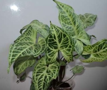 Зеленолистный сингониум. Довольно необычное, но очень красивое растение. Отличается яркими, зелеными листьями, которые, словно лиана, тянуться вверх. Через несколько месяцев выращивания вы обнаружите сплошной зеленый каскад, которые очень эффектно украсит ваш дом.