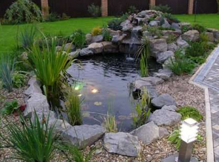 Ещё одно отличное, современное украшение – это пруд. В нем можно играться, мочить ноги и брызгаться когда жарко. Воспоминания от такой дачи останутся на всю жизнь. Нужно лишь выбрать форму, которая по душе, и выложить её камнем. Дно пруда, с помощью определённых технологий, можно сделать светящимся, чтобы вечером, расслабившись, наблюдать за игрой света.