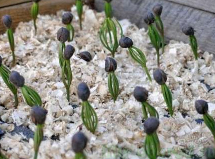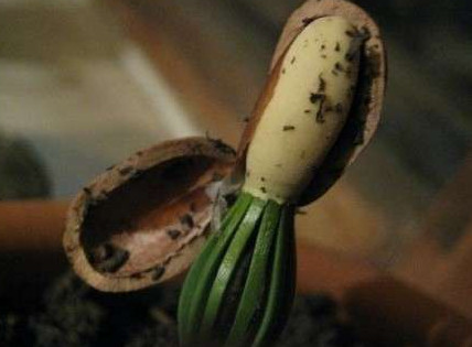 После этапа обработки орешков, их можно высаживать в ёмкости небольшого размера. Нужно подготовить субстрат для высаживания, в идеале, он должен содержать большую часть песка. Орешки высаживают на глубину около десяти миллиметров. Емкость с саженцами должна стоять при комнатной температуре. После того, как саженцы дадут ростки, их нужно переставить на светлое место.