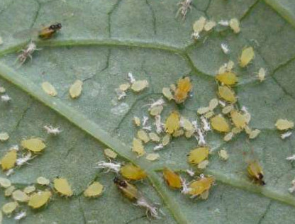 Белокрылка. Этот вредитель залетает с улицы. Лучшая защита от него — ставить сетки на проемы в теплице. Она заражает растения сажистым грибком, листья покрываются черным налетом, они не дышат и погибают. Для борьбы с нею используют клеевые ловушки для насекомых. Белокрылка любит желтый цвет, поэтому приманкой биологических препаратов является именно он.