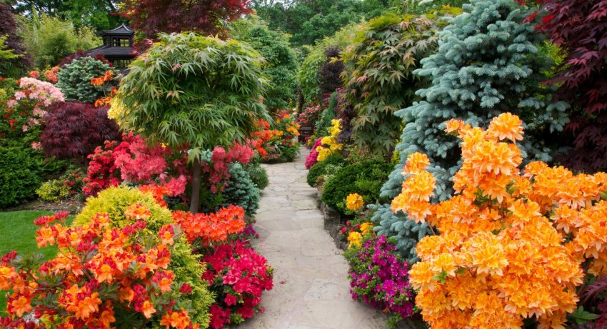 Для того, чтобы ваш сад не превратился в пестрящий несочетающийся между собой цветник, важно позаботиться о гармонично подобранной цветовой гамме. Удачным решением станет монохромность или напротив, использование абсолютно контрастных цветов.