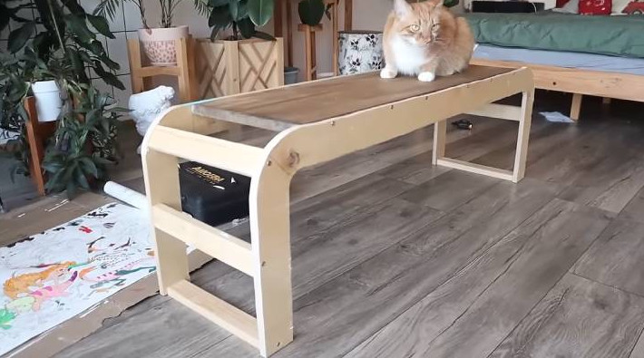 Исключительно красивая, мягкая, стильная, удивительная банкетка нестандартной формы! Она прекрасно дополнит любой интерьер. Такую банкетку было бы сложно найти в готовом варианте в магазине! Сделайте её своими руками по лёгкому мастер-классу ниже. Дом. Ремонт. DIY/youtube Материалы: фанера 15 мм; старая полка или мебельный щит; рейки; картон; ХДФ; ковровое покрытие; поролон 30 мм и 10 мм; синтепон; ткань букле. Каркас банкетки Сделать каркас можно из фанеры 15 мм. Расчертите ножки с закруглёнными внешними и внутренними углами. Размеры банкетки вписываются в фигуру — 124*39 см, ширина — 7 см. Дом. Ремонт. DIY/youtube Таким образом, выпилите лобзиком 2 одинаковые заготовки боковых частей с ножками. Вот как это выглядит на данном этапе: Дом. Ремонт. DIY/youtube Сиденье банкетки В качестве сиденья можно использовать старую полку из мебельного щита или приобрести его отдельно. Размер — 30*100 см. Закрепите боковые ножки к сиденью на уголки. Дом. Ремонт. DIY/youtube Теперь необходимо добавить дополнительные рёбра жёсткости. Делаются они из реек. Напилите и прикрепите по бокам рейки 20*45 мм. Дом. Ремонт. DIY/youtube Обшивка и укрепление Теперь необходимо подготовить каркас к обшивке. Сначала мебельным степлером закройте банкетку картоном, сверху — фетром или более бюджетным вариантом — ковровым покрытием (можно найти в Леруа Мерлен). Дом. Ремонт. DIY/youtube С внутренней стороны закройте банкетку ХДФ, картоном и ковровым покрытием/фетром. Теперь она приобрела объём и при этом осталась лёгкой! Для низа оклейте банкетку поролоном толщиной 10 мм, а для верха — 30 мм. Дом. Ремонт. DIY/youtube Сверху укройте синтепоном, который сгладит неровности. Наконец, сшейте чехол. Перенесите все детали (боковые, верх и низ) на ткань, вырежьте с припусками 0,5 см, сшейте на машинке, сделайте надсечки в местах закругления, примерьте. Зафиксируйте ткань на внутренней стороне вручную потайным швом, а на дне ножек — мебельным степлером и ручным швом. Дом. Ремонт. DIY/youtube Если банкетка будет стоять на ковре, то на этом можно закончить. Если же на твёрдом полу, то к ножкам желательно добавить кусочки фанеры или специальные подпятники. Дом. Ремонт. DIY/youtube Необыкновенная мягкая банкетка готова! Она с лёгкостью выдержит взрослого человека. Стильная мебель своими руками!