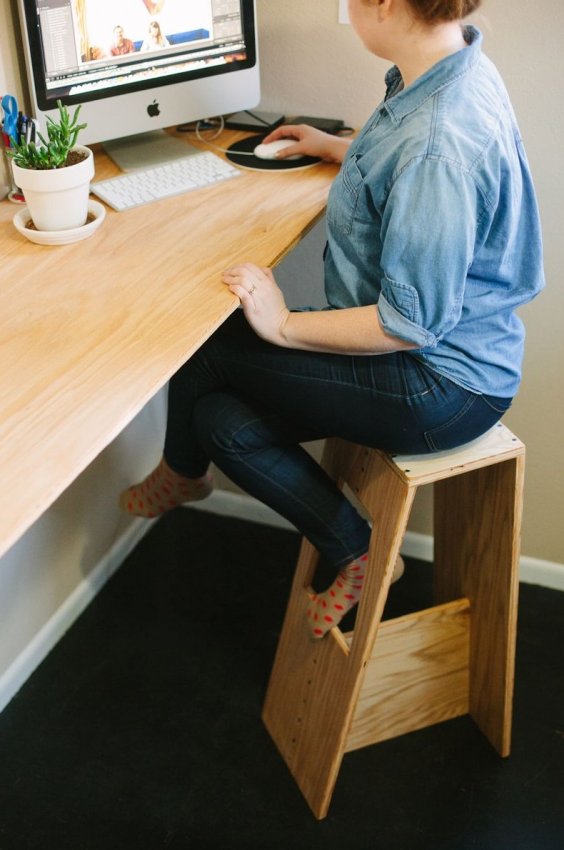 Стул сделан специально для компьютерного стола, за которым работают стоя, а не сидя (столешница установлена чуть ниже уровня плеч).