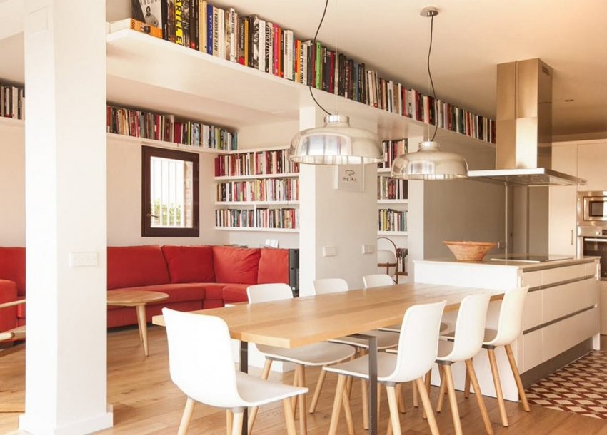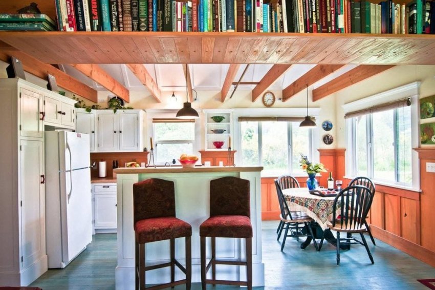 Если в квартире не хватает места для хранения, значит, задействовано не все свободное пространство. Организовать хранение вещей можно даже под потолком на вместительных полках. Эти полки не займут полезного пространства комнаты, но при этом вместят много разных вещей. На полках под потолком можно организовать домашнюю библиотеку, хранить там сезонные вещи, использовать эти полки для размещения запасов предметов быта и прочих мелочей.