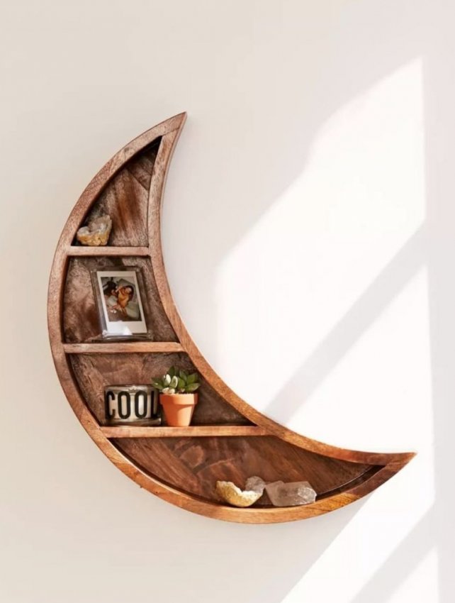 Полка в форме луны, круглая полка, или, может быть, полка из водопроводных труб? В этой подборке вы наверняка найдете вариант для своего интерьера.