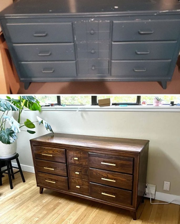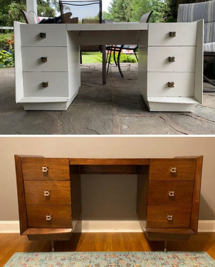 Восстановление и переделка старой мебели — увлекательный процесс, который позволяет получить потрясающие результаты. Удивительно, как из тумбы, которую хотели отправить на помойку, получается современная прикроватная тумбочка, а из стеллажа со сломанными ящиками абсолютно новый предмет мебели, который может стать настоящим украшением комнаты. Старую мебель можно купить за небольшие деньги, а результат который вы получите, без сомнения, будет стоить затраченного на переделку времени.
