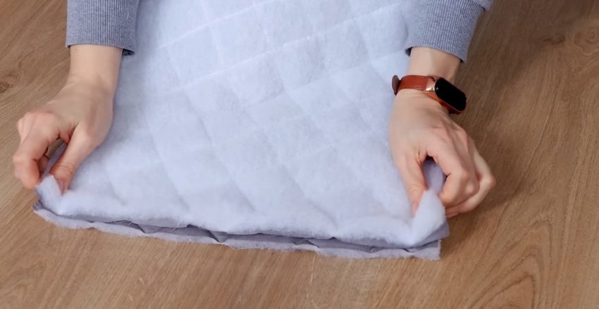 Последний шаг — изготовление декоративного чехла из выбранной ткани. Декоративный чехол шьется точно так же, как и внутренний. По нижней части декоративного чехла сделайте кулиску и вставьте в нее резинку, так чехол будет аккуратно закреплен на основании.