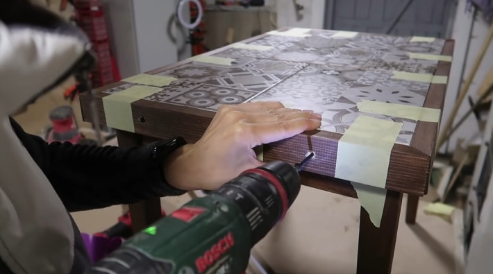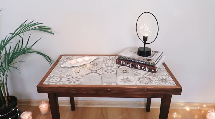 Не спешите с покупкой нового стола. Если у вас имеется старенький деревянный столик, то его вполне можно реставрировать и преобразить настолько, что он будет даже лучше нового! Bubenitta/youtube Сначала стол нужно разобрать, снять ножки. Если имеются части стола, которые держатся некрепко, то их нужно подклеить столярным клеем ПВА. Зачистить все детали шлифмашинкой или просто вручную наждачной бумагой: столешницу и ножки, чтобы открыть структуру дерева, выровнять поверхность и удалить старый лак. Bubenitta/youtube Украшать столешницу будем плиткой. Разметьте по размерам столешницы и нарежьте плитку болгаркой. Bubenitta/youtube Если необходимо, подровняйте края столешницы. Приклейте плитку на чистую, сухую поверхность столешницы. Используйте для этого жидкие гвозди. Bubenitta/youtube Обратную сторону стола и ножки покройте морилкой или краской, чтобы они сочетались с плиткой. Край обрамите брусками, которые также покройте той же морилкой или краской. Bubenitta/youtube Соберите столик обратно. Прикрутите на саморезы обрамление стола из брусков. Bubenitta/youtube Стыки плитки закройте фугой, в которую добавлен колер необходимого цвета. Bubenitta/youtube На ножки приклейте фетровые подкладки (подпятники). Саморезы закройте декоративными гвоздиками (гвозди с декоративной шляпкой). И вот так выглядит столик в новом виде! Чудесное преображение на бюджете. Bubenitta/youtube