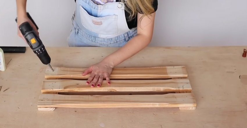 Отшлифуйте каждую деталь. Соедините три детали длиной по 60 см, используя для этого самые короткие рейки. Подготовьте три таких заготовки.