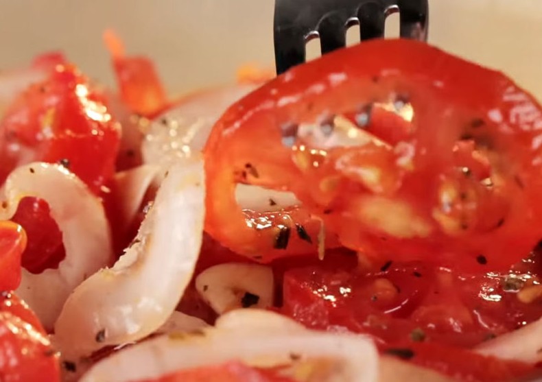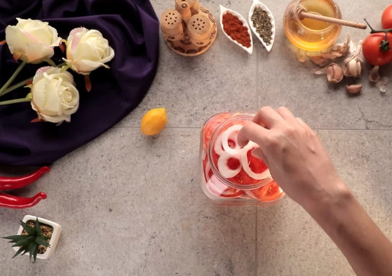Вкусные и ароматные помидоры в банке станут вашей любимой летней закуской! Ингредиенты самые простые и доступные, ничего варить, кипятить или жарить не надо — только нарезать и сложить в банку нужные ингредиенты! На приготовление этой закуски вы потратите пару минут, а результат можно оценить уже на следующий день — маринованные, пряные, идеально сбалансированные по вкусовым качествам помидоры непременно покорят вас.