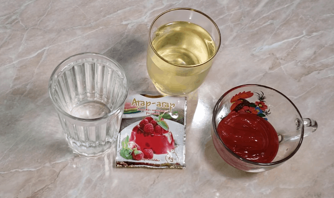 1.5 ч. ложки агар-агара ( при замене на желатин количество увеличивают в 4 раза)