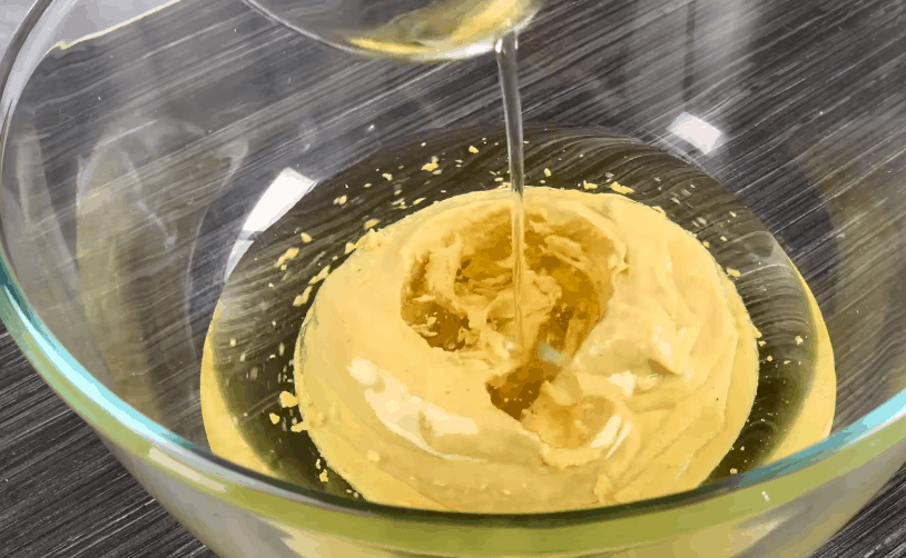 В отдельной емкости смешиваем горчицу и растительное масло до получения однородной массы.
