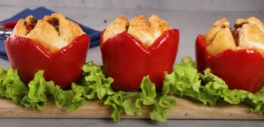 Даже такое привычное блюдо как фаршированные перцы может стать настоящим украшением праздничного стола. Если вы хотите удивить гостей, обязательно приготовьте фаршированные перцы по новому рецепту. Благодаря слоеному тесту, перцы буквально «расцветут» в духовке. Помимо привлекательно внешнего вида фаршированные перцы имеют еще и отменный вкус, который оценят даже гурманы.