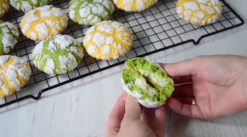 Что может быть вкуснее, чем свежеиспеченное домашнее печенье? Однако обычным печеньем уже никого не удивить. Если вы перепробовали большое количество рецептов домашней выпечки и ищите что-то действительно уникальное и интересное, тогда обязательно попробуйте приготовить яркое мраморное печенье, от которого все будут в восторге. Yuliya Small/youtube Лимонное печенье: мука — 220 гр; сахарная пудра — 180 гр; разрыхлитель — 10 гр; соль — щепотка; яйцо — 1 шт; лимонная цедра — с двух лимонов; сок лимона — 40 гр; сливочное масло — 60 гр; пищевой краситель. Мятное печенье: мука — 220 гр; сахарная пудра — 180 гр; разрыхлитель — 10 гр; соль — щепотка; яйцо — 1 шт; мята — 15 гр; шпинат — 60 гр; сливочное масло — 60 гр. Чизкейк для начинки: сливочный сыр — 200 гр; сахарная пудра — 40 гр; яйцо — 1 шт; цедра лимона, ваниль — по вкусу; 150 гр сахарной пудры для обсыпки. Для приготовления лимонного теста соедините в миске все сухие ингредиенты. Отдельно соедините яйцо, цедру, сок лимона. Пробейте массу погружным блендером для получения однородной консистенции. При желании можно добавить несколько капель пищевого красителя, так печенье будет более ярким. Yuliya Small/youtube Соедините влажные ингредиенты с сухими и размягченным сливочным маслом. Замесите однородное, мягкое тесто, которое будет иметь липкую консистенцию. Накройте тесто пищевой пленкой и оставьте в холодильнике минимум на 2 часа. Yuliya Small/youtube Для приготовления теста для мятного печенья также необходимо в отдельной емкости соединить все сухие ингредиенты. В отдельной емкости пробейте погружным блендером яйцо, листочки мяты без стеблей и шпинат, который придаст тесту красивый зеленый цвет. Yuliya Small/youtube Соедините сухие и влажные ингредиенты и сливочное масло. Однородное тесто для мятного печенья также необходимо убрать в холодильник минимум на 2 часа. Yuliya Small/youtube Печенье можно приготовить и без начинки, но с начинкой его вкус будет еще более ярким и интересным. Чтобы сделать начинку-чизкейк, взбейте все необходимые ингредиенты миксером. Yuliya Small/youtube С помощью кондитерского мешка выложите начинку в силиконовую форму с небольшими ячейками, также можно использовать форму для льда. Замороженную начинку будет легко поместить в центр печенья. Yuliya Small/youtube После охлаждения тесто практически не будет прилипать к рукам, и с ним будет удобно работать. Для формовки печенья чайную ложку с горкой теста превратите в лепешку и поместите в центр замороженную начинку. Сформуйте шарик. Yuliya Small/youtube Каждую заготовку хорошо обваляйте в сахарной пудре. Yuliya Small/youtube Выложите заготовки на противень, застеленный пергаментной бумагой, на расстоянии друг от друга, так как во время выпечки печенье будет расползаться. Выпекайте печенье в предварительно разогретом до 180 градусов духовом шкафу 12-14 минут. Yuliya Small/youtube Печенье после выпечки получается очень ярким и красивым, особого внимания заслуживает мраморная структура. А вкус печенья с начинкой не оставит равнодушным даже гурманов.