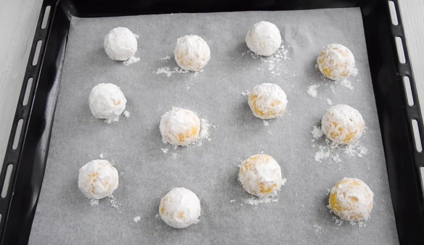 Каждую заготовку хорошо обваляйте в сахарной пудре.