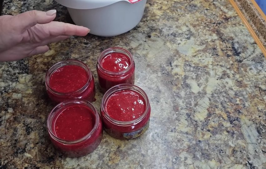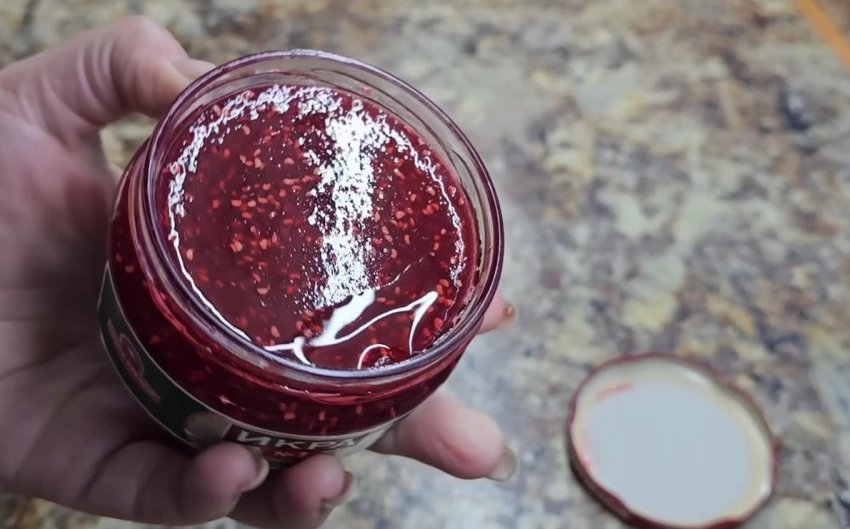 Хранить сырой малиновый джем в холодильнике можно целый год.