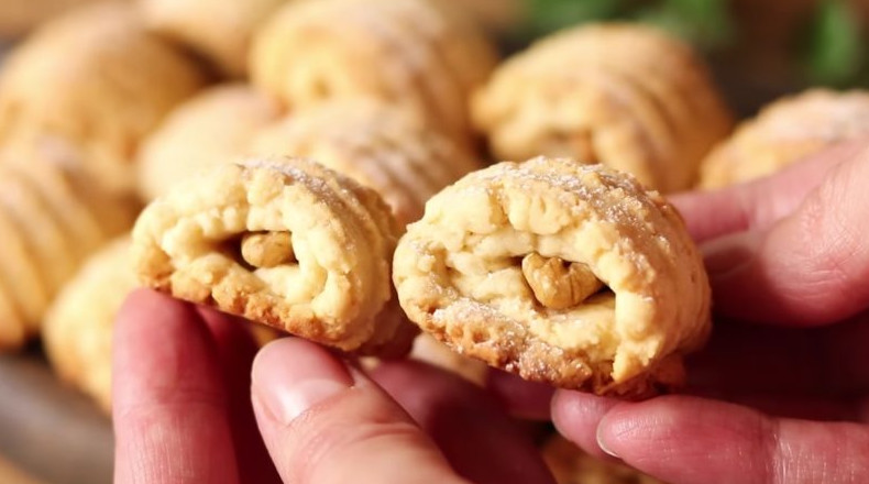 Ароматное, рассыпчатое медовое печенье с начинкой станет прекрасным дополнением семейного чаепития. Возьмите самые простые ингредиенты, чтобы сделать это чудесное печенье, которое точно не купишь в магазине. Большим преимуществом печенья является то, что оно готовится без использования формочек, но при этом получается очень красивым. Наташа Шакинко/youtube Ингредиенты на 23 штуки (350г): 1 среднее яйцо; 50г сахара; 50г сливочного масла; 40г мёда (1 ст.л.); 220г муки; 3/4 ч.л. разрыхлителя (4г); щепотка соли; орехи грецкие для начинки. Процесс приготовления: Соедините размягченное сливочное масло с медом, сахаром, солью и яйцом до получения однородной массы. Частями введите просеянную муку, смешанную с разрыхлителем, и замесите однородное упругое тесто, которое не прилипает к рукам. Наташа Шакинко/youtube Сразу же раскатайте тесто, придав ему форму «колбаски». Разделите полученную «колбаску» на 23-25 равных частей. Наташа Шакинко/youtube Каждому кусочку теста придайте продолговатую форму. Приготовить красивое печенье поможет ложка для меда, с помощью которой получится создать оригинальную текстуру на поверхности теста. Все, что нужно сделать — просто прокатать тесто ложкой для меда. Наташа Шакинко/youtube Обратите внимание! Если у вас нет специальной ложки для меда, то приготовить красивое печенье можно с помощью обычной вилки. На край гладкой стороны теста выложите грецкий орех и аккуратно заверните заготовку. В качестве начинки также можно использовать курагу, чернослив, изюм, кусочек шоколада. Наташа Шакинко/youtube Выложите печенье на противень, застеленный пергаментной бумагой, и выпекайте в хорошо разогретой до 180°С духовке примерно 15 минут. Наташа Шакинко/youtube Перед подачей ароматное печенье можно присыпать сахарной пудрой. Наташа Шакинко/youtube
