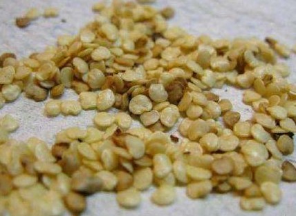 Произвести калибровку. Отобрать мелкие, пустые и деформированные семечки, оставив только крепкие на вид. Затем, их опускают в соленую воду (на стакан воды 1 чайная ложка соли) не более чем на 5 минут. Всплывшие семена к посеву не пригодны.