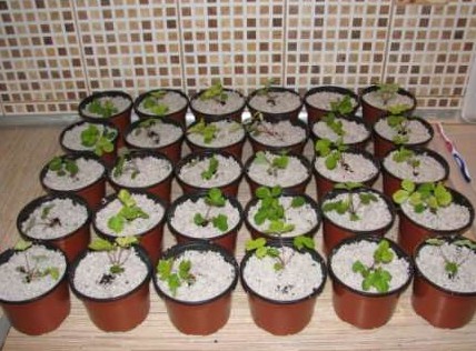 Подготовить саженец. Для посадки клубники в горшки, подготовку начинают с осени. Для этого следует выкопать необходимое количество самых крепких и урожайных кустиков с двумя или тремя листиками. Их укладывают в ряд друг на друга, накрывают дышащим материалом и ставят в сухое прохладное место до февраля.