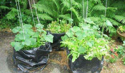 Для того чтобы получить богатый и полезный урожай овощей, а в частности, огурцов, вовсе не обязательно иметь дачный участок большого размера. Существуют методики эффективного выращивания, без задействования большого огорода. Например, метод выращивания огурцов в мешках, позволяет получить богатый урожай, даже не на огороде, а на собственном балконе. Впервые о таком слышите? Посадка огурцов в мешках с землей – современный способ выращивания этого растения. В чем его суть? Посадка огурцов в мешках с землей Огурцы в мешках с землей – как посадить? Опытные огородники выделяют такие преимущества выращивания огурцов в полиэтиленовом мешке: Экономия пространства, необходимого для выращивания. Маленькие затраты труда: нет необходимости в прополке, рыхлении, формировании грядок. Овощи, выращиваемые таким образом, не подвергаются нападению вредителей и заражению болезнями. Раннее созревание урожая и легкость его уборки. Овощи, выращенные таким способом, остаются чистыми. Для того чтобы вырастить огурцы в мешке с землей, нужно приготовить следующие ингредиенты: -мешки из достаточно плотного полиэтилена, темного цвета; -смесь грунтов; -семена огурцов; -материал (арматура или дерево) для создания опоры; -бечева или другая крепкая веревка для подвязки плетей. Высадку огурцов в мешки можно начинать с подготовки самой рассады (при высаживании в мешки семян, значительно удлиняется время созревания овоща). Рассада для огурцов высаживается в стаканчики, наполненные грунтом. В которых она может находиться в течение месяца, при температуре от 22 градусов. Как же выбрать семена для посадки огурцов? Для того чтобы огурцы спели не все сразу, а поочередно можно подобрать семена ранние, среднего и длительного созревания. При таком выборе семян, можно обеспечить себя свежими овощами на протяжении всего лета. Стоит обратить внимание на партенокарпические огурцы, они, как правило, гарантируют обильный урожай, потому что не содержат пустоцветов. Не следует смешивать в одном мешке рассаду огурцов для засолки и для салатов, потому что после образования плетей, их плоды можно перепутать. При выборе мешков, для высаживания рассады огурцов, следует ориентироваться на их диаметр. Идеальным будет размер от 1,5 метров, в мешки такого объема поместится немало рассады. Цвет мешков лучше выбрать черный. Правила посадки огурцов в грунт Не стоит легкомысленно относиться к выбору грунта. Огурцы довольно требовательны к плодородной почве. Поэтому в грунт важно добавить торф, перегной, золу и суперфосфат: в такой смеси овощ будет хорошо развиваться. Место, на которое можно поставить мешок с рассадой должно находиться в кружевной тени деревьев, так на листву овоща не попадет жаркое полуденное солнце. Для устойчивости мешка, нужно на предполагаемом месте установки мешка сделать небольшое (около двадцати сантиметров) углубление в земле. Теперь можно наполнять приготовленным грунтом мешки, на дне которых предварительно нужно сделать прорези, для поступления кислорода и выхода излишней влаги. Не нужно заполнять мешок землей до самого верха, достаточно заполнить его сантиметров на сорок. Края мешка нужно подвернуть. Не стоит высаживать в мешок слишком много кустов рассады, если они будут расти в свободе, урожай получится богаче. Рассаду, после высаживания, нужно обил