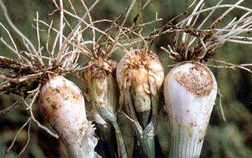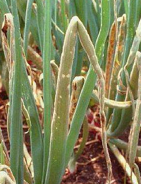 Ложная мучнистая роса. Очень опасное заболевание, поражающее все части луковицы. На стрелах сразу возникают небольшие пятна серого или фиолетового оттенка. Само перо быстро желтеет и загнивает. Сама луковица останавливается в размере, больше не растет и очень плохо хранится. Что касается вкусовых особенностей, то плоды, пораженные мучнистой росой, не отличаются сочностью и приятным ароматом. Заболевание поражает все виды лука, даже многолетние. Оно также мгновенно передается на здоровые луковицы, а также через оставленные на зиму в земле зараженные корнеплоды. Причиной возникновения мучнистой росы становятся туманы, дожди, влажность и отсутствие ветра.