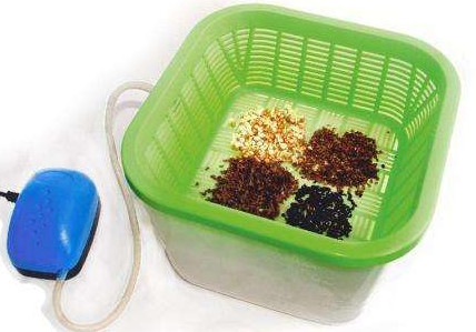 В домашних условиях процедуру барботирования можно провести с помощью компрессора из аквариума. Как только семена и банка наполнены, моно опускать в нее трубку и включать компрессор. Спустя 12 часов вода меняется.