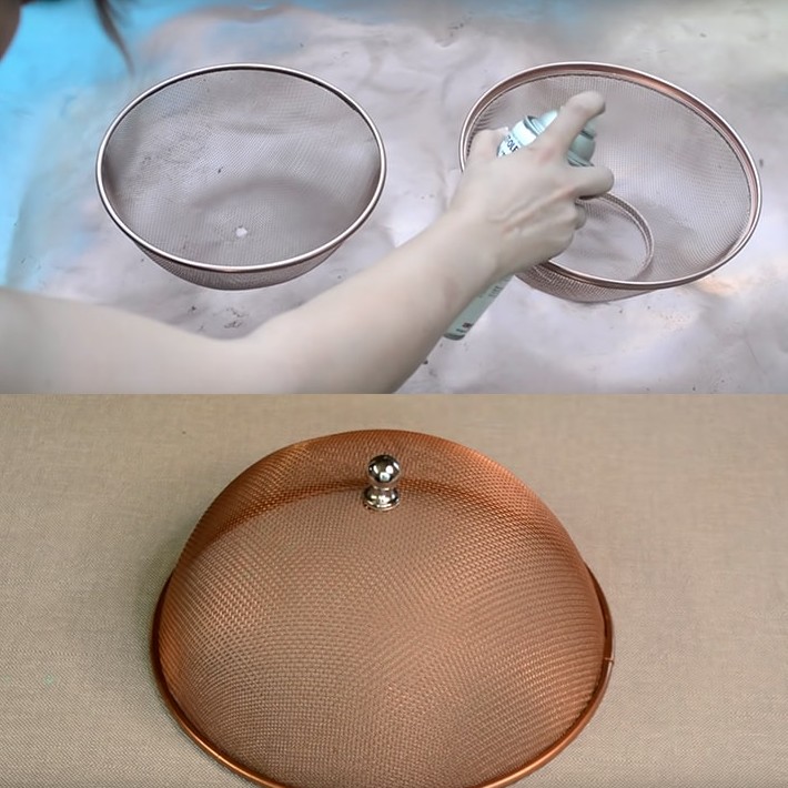 Перекрасьте корзинку в другой цвет с помощью краски в баллончике. После полного высыхания краски, покройте ее несколькими слоями прозрачного лака. Прикрутите любую медную ручку с дополнительной шайбой.