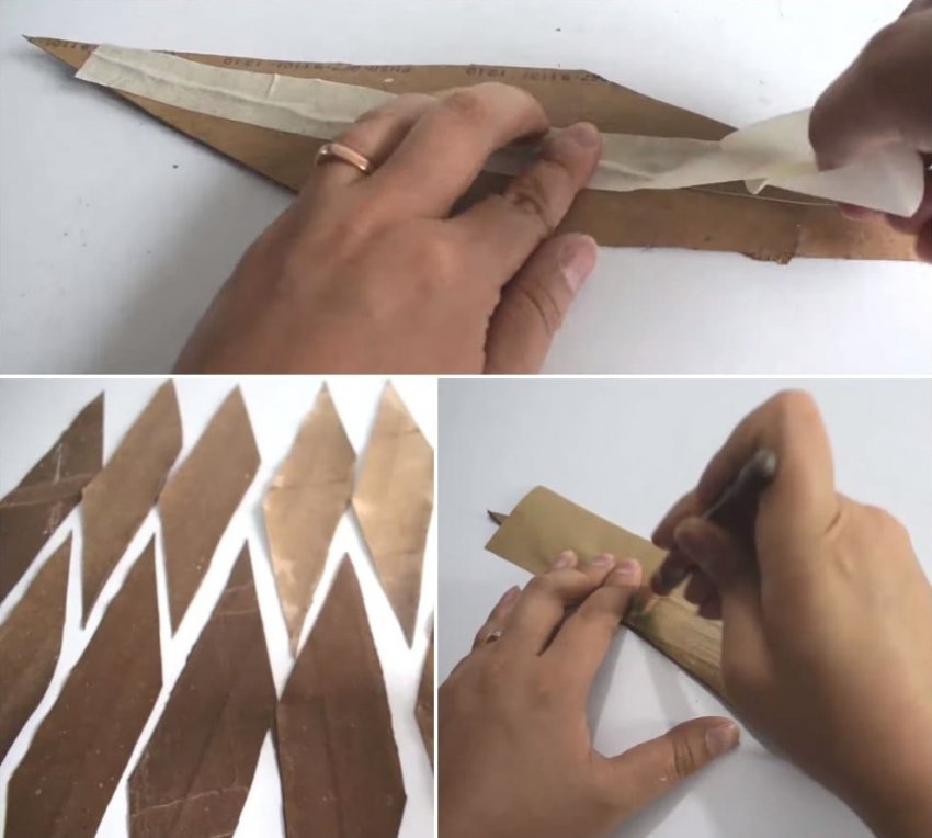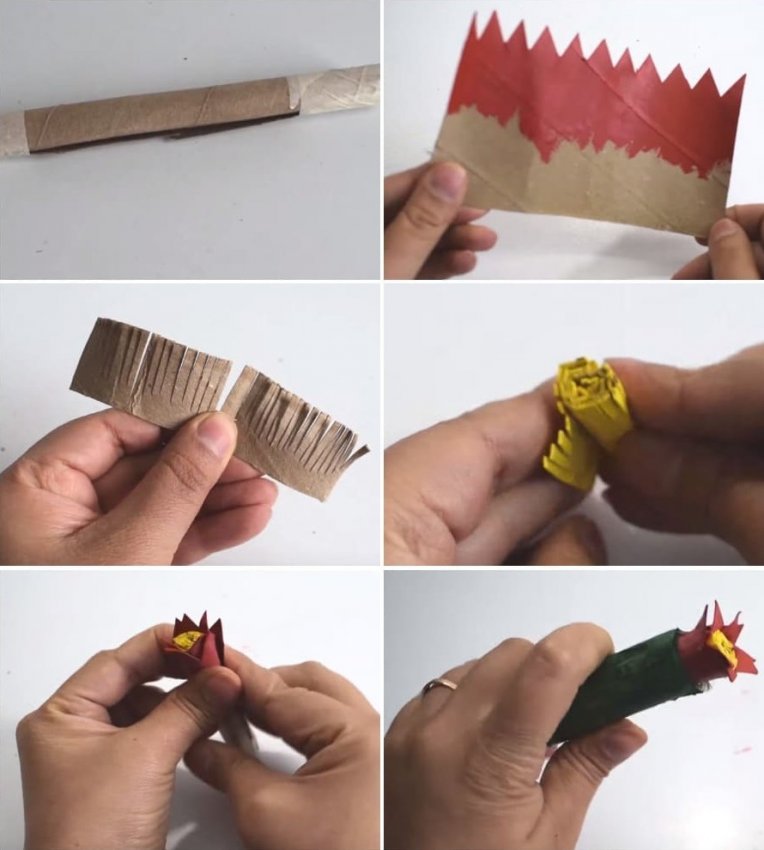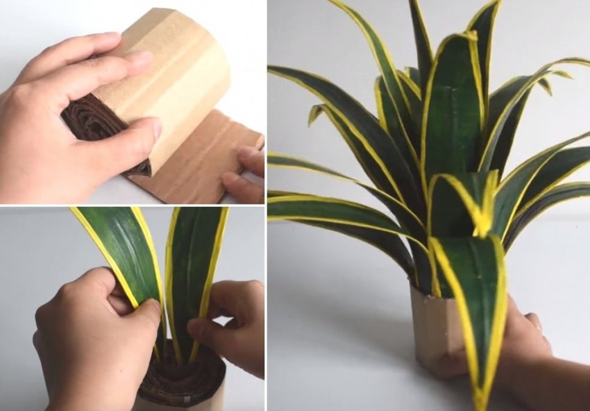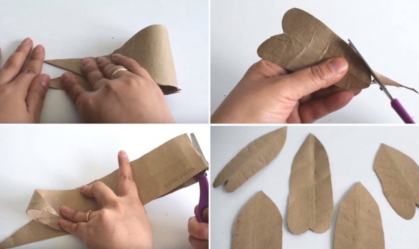 Начинать в любом случае придется с одного и того же: разрезать втулки и выравнивать их. Дальше техника создания будет разной. Для растений с длинными листьями идеально подойдут втулки от рулонных полотенец.