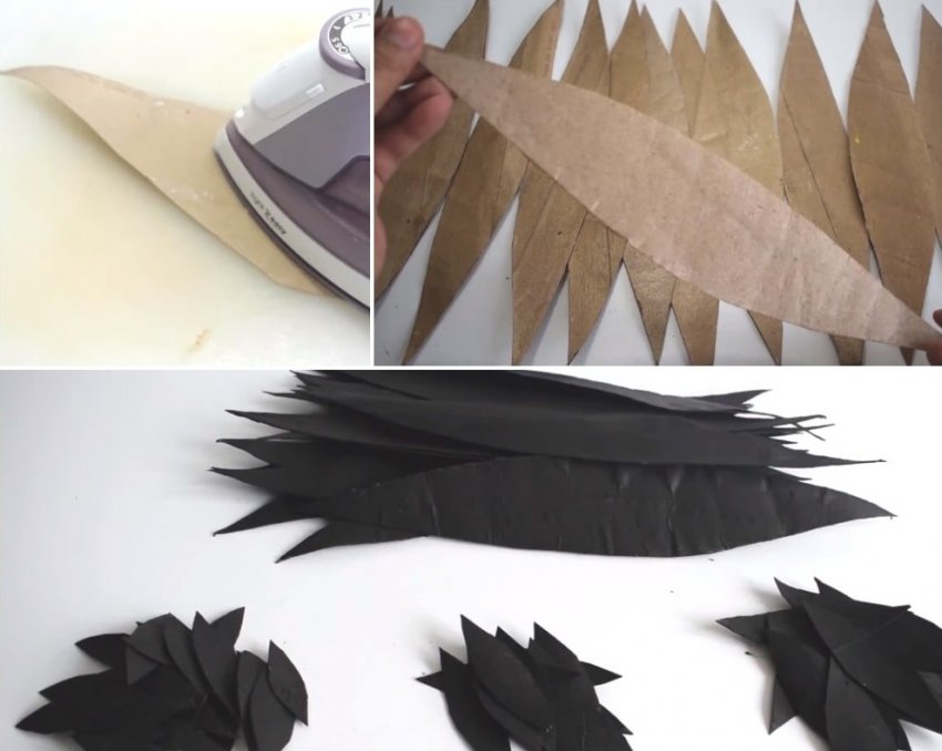 Проглаживаем заготовки, чтобы цветок больше походил на настоящий. Заготовив достаточное количество будущих листьев, покрываем их грунтовкой, а затем окрашиваем.