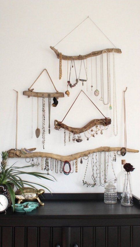 Этим корягам уготована долгая и красивая жизнь. Теперь они превратились в эффектный уголок для хранения украшений.