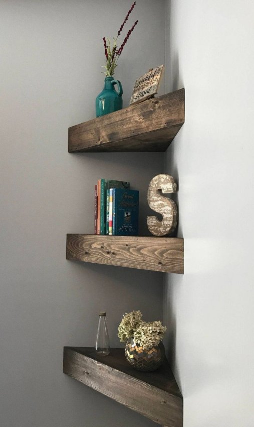 Более простую угловую полку сложно придумать, но насколько интересно она при этом выглядит!