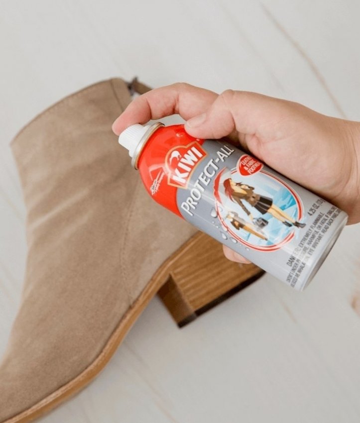 В обязательном порядке используйте защитный спрей для обработки замшевой обуви. Спрей обладает грязеотталкивающими и водоотталкивающими свойствами, что очень важно при уходе за замшей.
