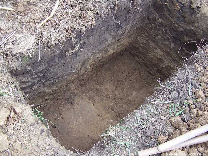 Первым делом, выкапываем яму. Яма у нас двухуровневая. Второй уровень примерно на 30 см ниже первого.