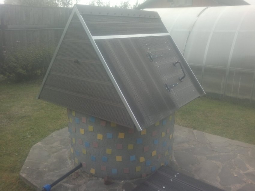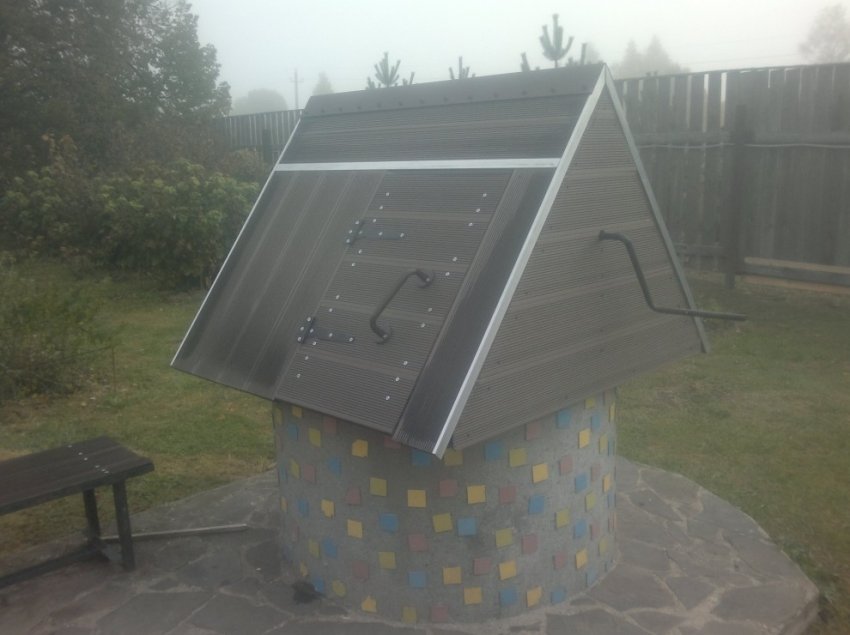 После основного строительства остались несколько досок и обрезки. Сделал новый домик для колодца. С дверцей пришлось повозиться, но результат вполне удовлетворил) И лавочку у колодца обновил.